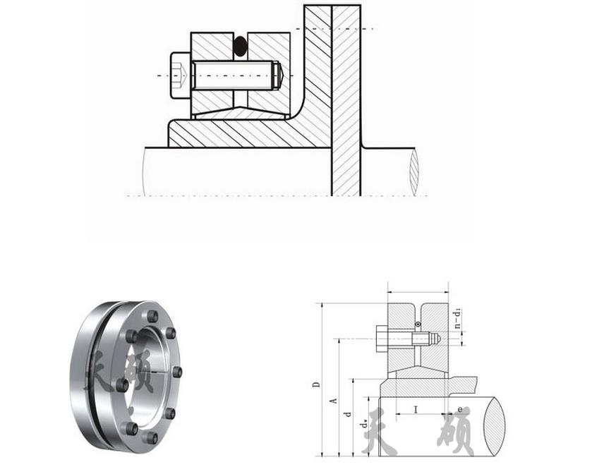 ●當(dāng)脹套固定到軸套(轂)的合適位置,按給定的力矩擰緊螺栓,錐形內(nèi)圈向軸套施加徑向力,這種強制摩擦聯(lián)結(jié)可安全地傳遞大扭矩和負(fù)載